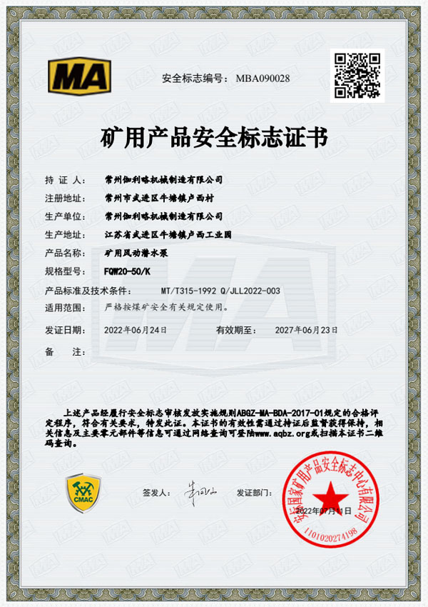 • 礦用安全標(biāo)志證書-BQG550/0.3