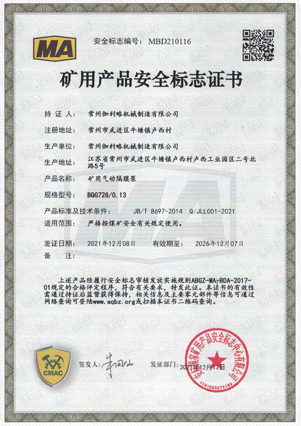 • 礦用安全標(biāo)志證書-BQG170/0.3