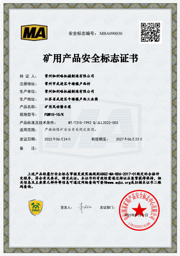 • 礦用安全標(biāo)志證書-FQW15-15/K